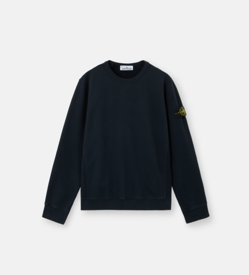Ribbed neckline. Triangular ribbed insert at shoulders and down sides. Stone Island badge on left sleeve. Elasticated ribbed cuffs and bottom band. Regular fit.